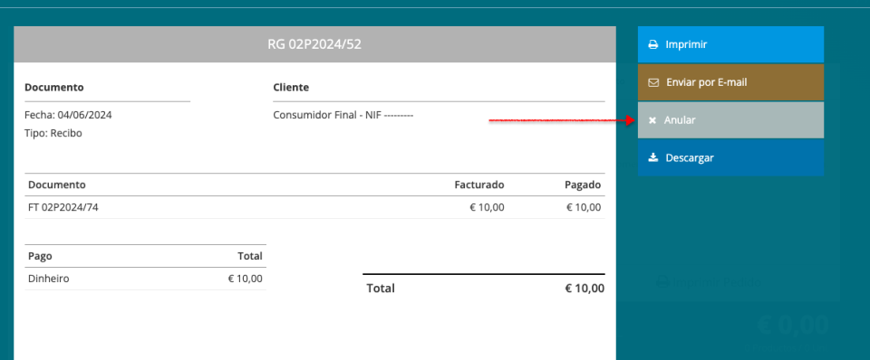 Una vez abierto el recibo, en el lado derecho encontrarás la opción de Anular.