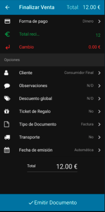- Cuando esté completo y listo para emitir, presione Emitir Documento para finalizar y poder imprimir la factura.
