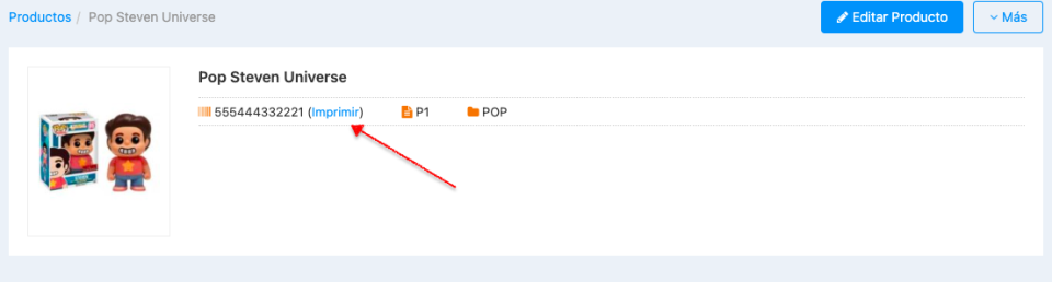 - Haga click en Imprimir (el código está al lado de la foto del producto).